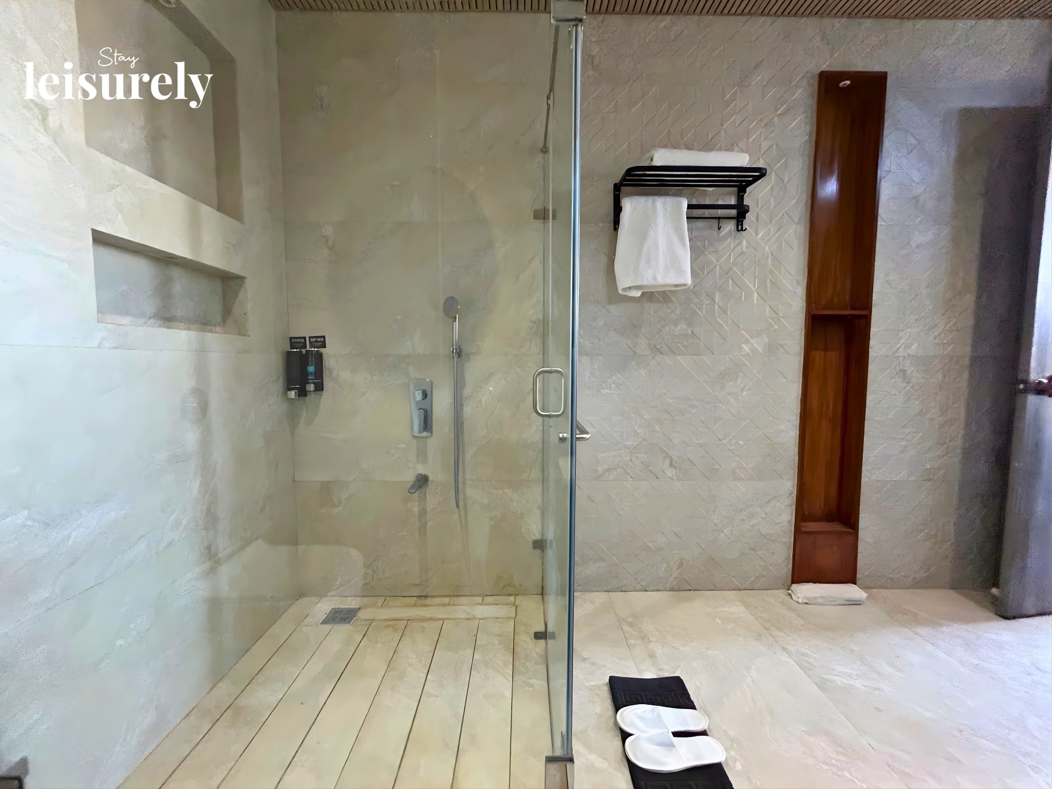 The villa has two wings, each with its own staircase (no lift). Each wing has a living room, 3 bedrooms, and balconies, offering privacy and comfort for everyone. On the rooftop, you’ll find a glass-floor terrace with stunning views, a Jacuzzi, a steam room, and a rooftop lounge — ideal for enjoying sunsets, small events, or peaceful moments.