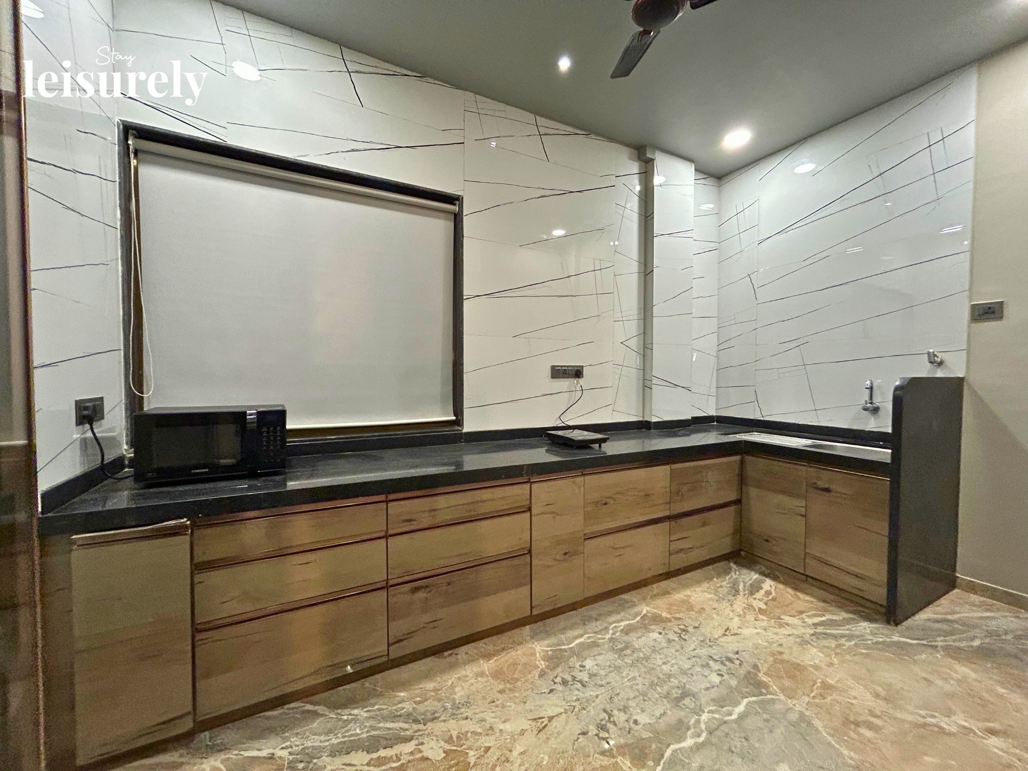 Guests have exclusive access to the entire villa, including all 6 bedrooms with ensuite bathrooms, both living rooms with Smart TVs and board games, the terrace with seating, glass-floor views, jacuzzi, and steam room, the private semi-cylindrical swimming pool, the private sports turf for cricket, badminton, and basketball, both kitchens (for reheating/use with prior approval), along with all outdoor areas such as the garden, balconies, and the parking space.