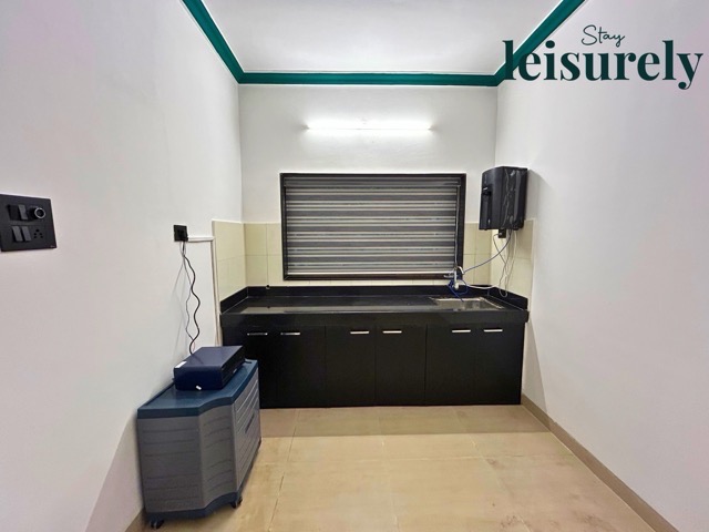 - The kitchen is well-equipped with a refrigerator, induction stove, basic cooking utensils, crockery, and a water purifier.