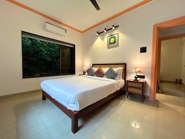 - All bedrooms are equipped with air conditioning, comfortable bedding, and offer views of lush greenery.