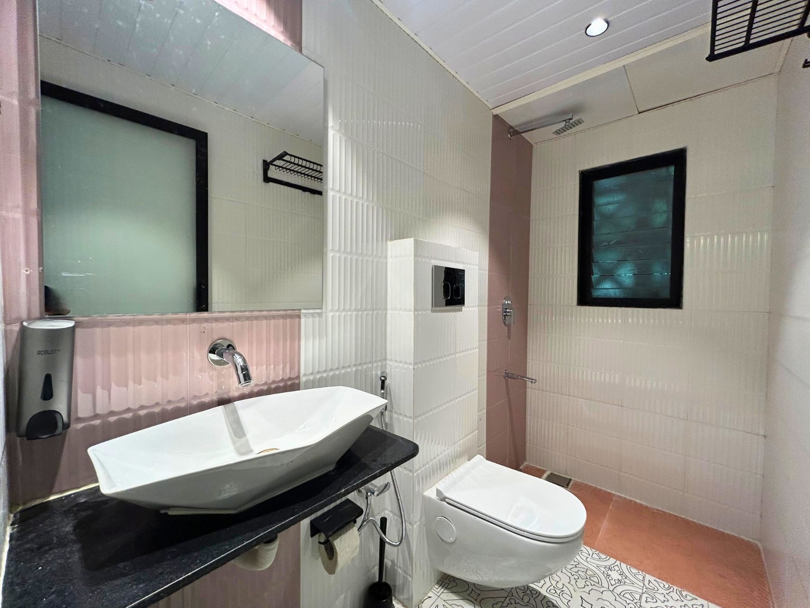 - Both bathrooms are modern and equipped with geysers for hot water.